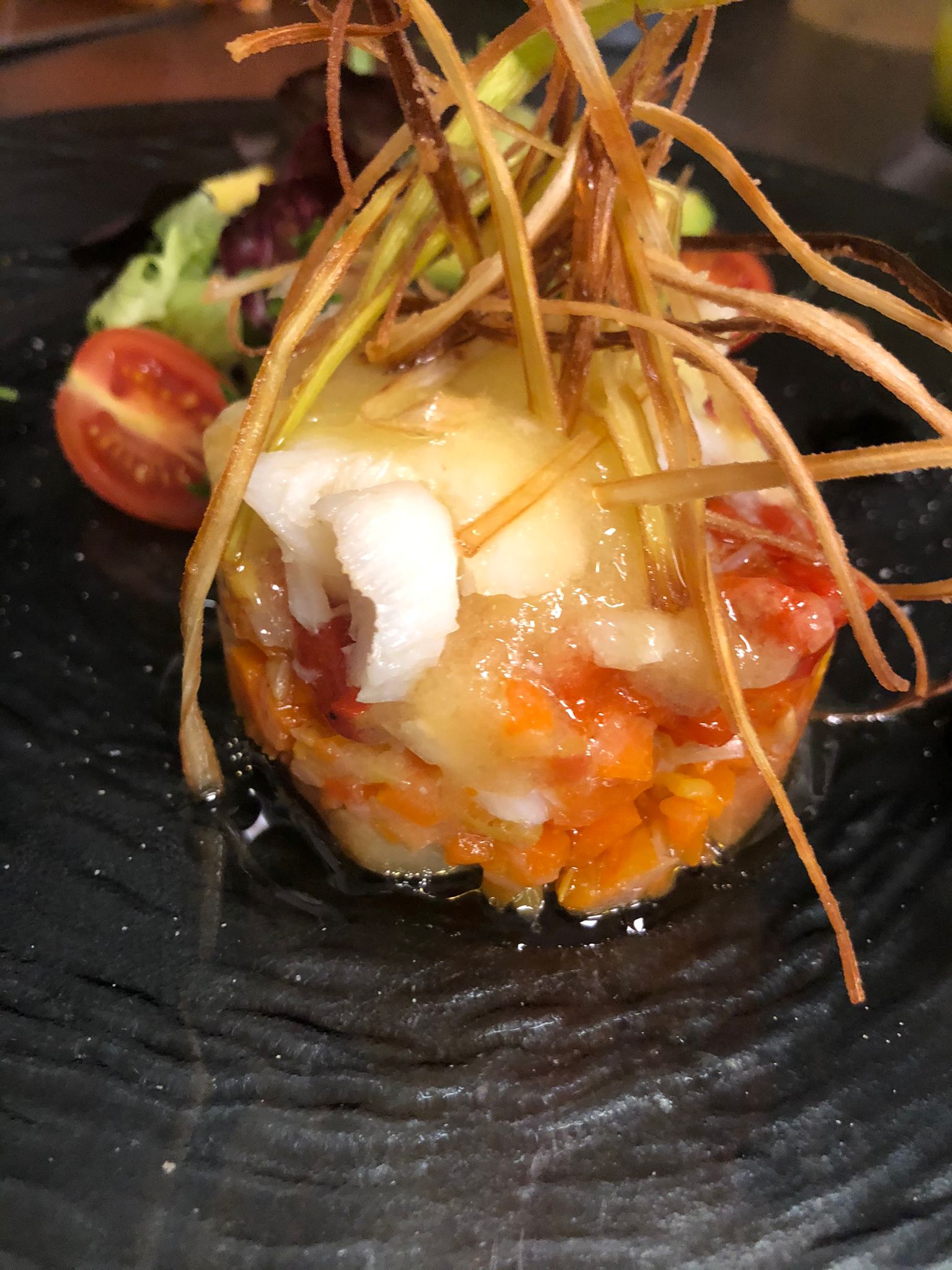 Ensalada de ventresca con vinagreta de verdura